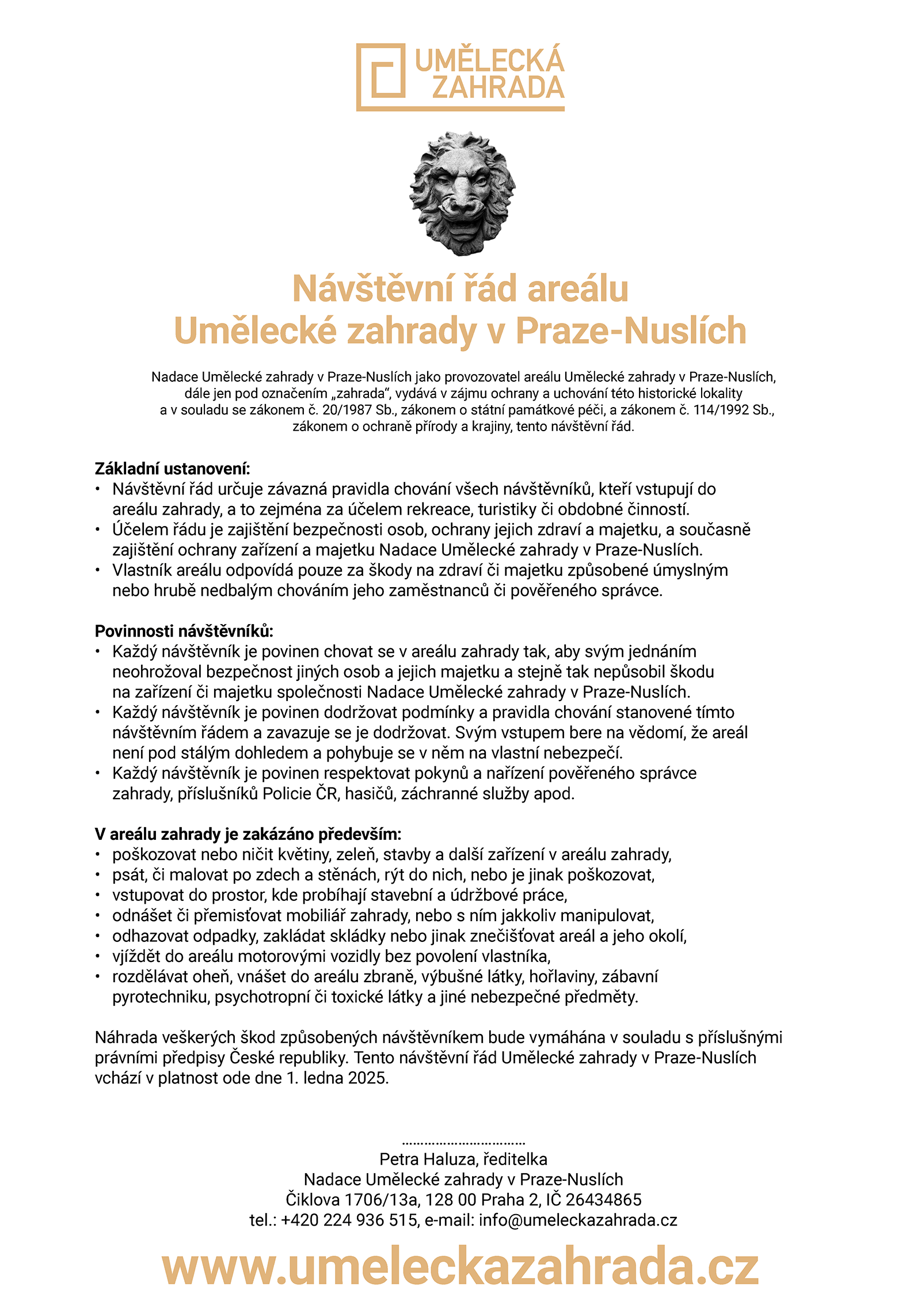 tel.: 224 936 515, email: info@umeleckazahrada.cz